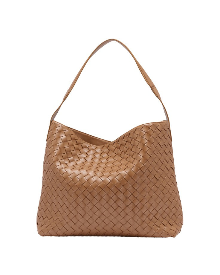 Sera Large Woven Bag - Textured Leather Shoulder Bag in Caramel