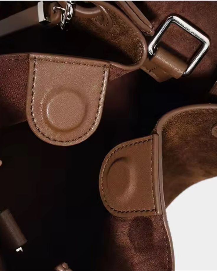 To care for your suede bag, avoid contact with water, oils, and prolonged sunlight. Gently brush with a suede brush to maintain softness and remove surface dust, and store in a cool, dry place when not in use.