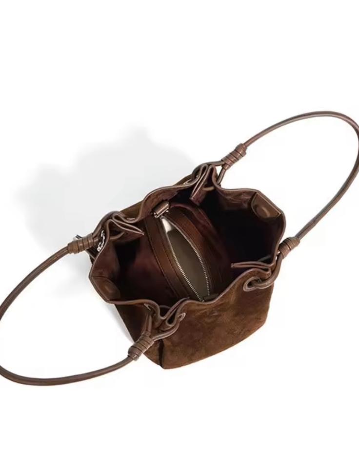 Sloane Mini Suede Bucket Bag – Deep Mocha