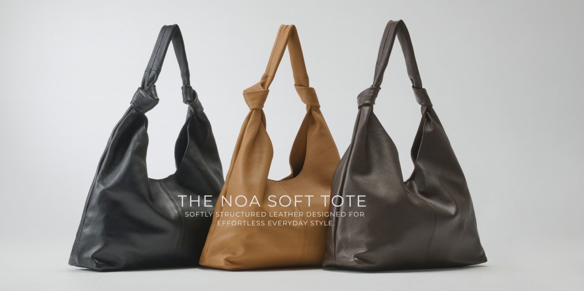Ava Foldover Tote – Genuine Leather Tote in Black