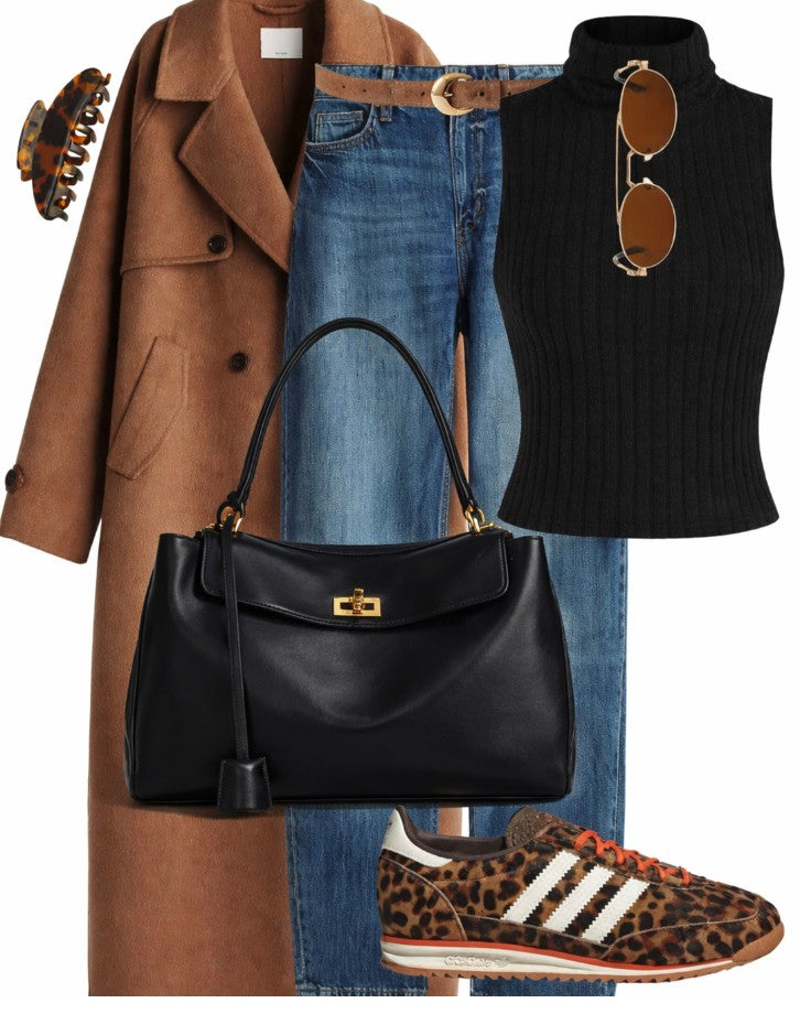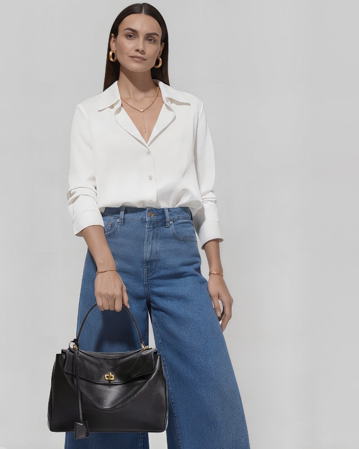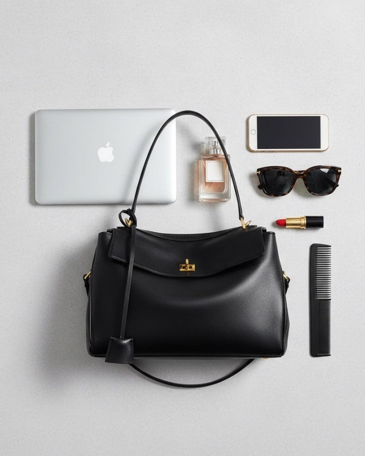 Ava Foldover Tote – Genuine Leather Tote in Black