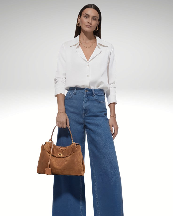 Solène Large Tote - Genuine Suede in Latte