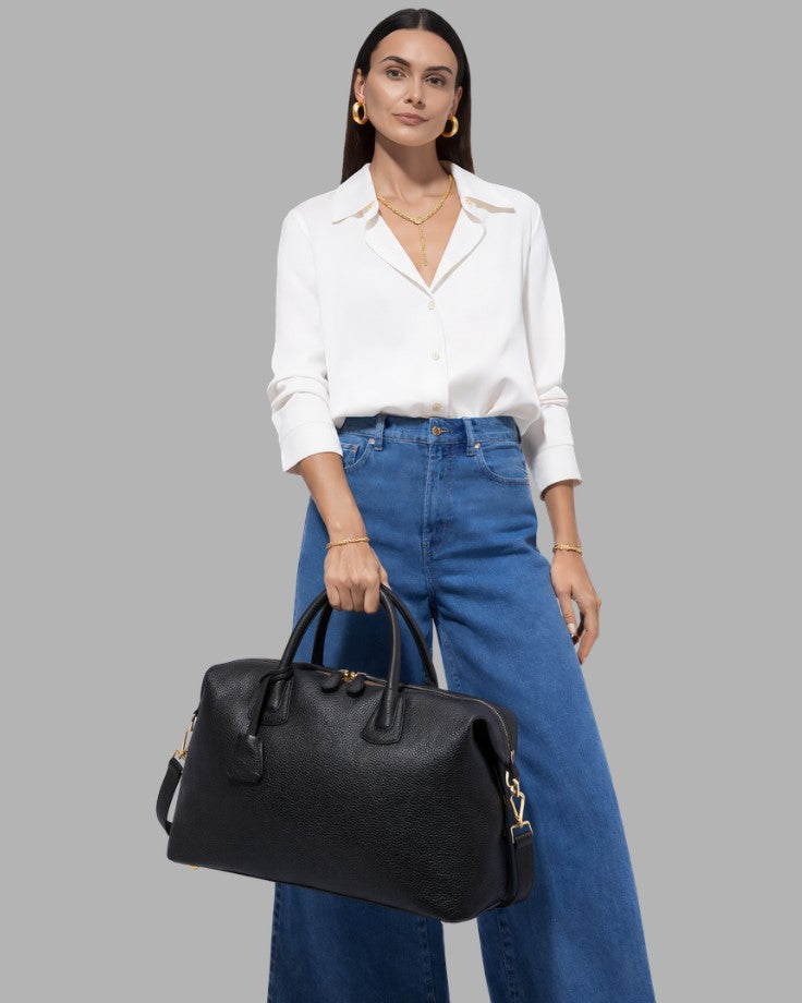 Voyager Everyday Escape Bag – Genuine Pebbled Leather Tote in Black