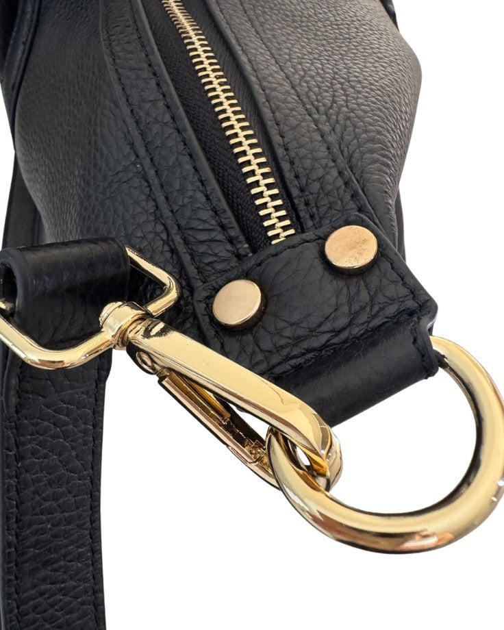 - Polished gold toned hardware
