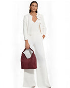 A detachable zipped pouch provides secure storage for essentials, making Celeste as practical as it is timeless. Finished in a rich burgundy tone, this versatile hobo bag transitions seamlessly from day to night.