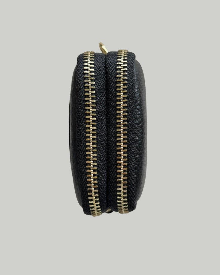 Featuring dual zip compartments for organisation and a front pocket with a magnetic closure for easy access, this piece blends functionality with understated elegance. Finished with polished gold-tone hardware and a sleek adjustable strap, it’s the perfect companion for travel, errands, or everyday wear.
