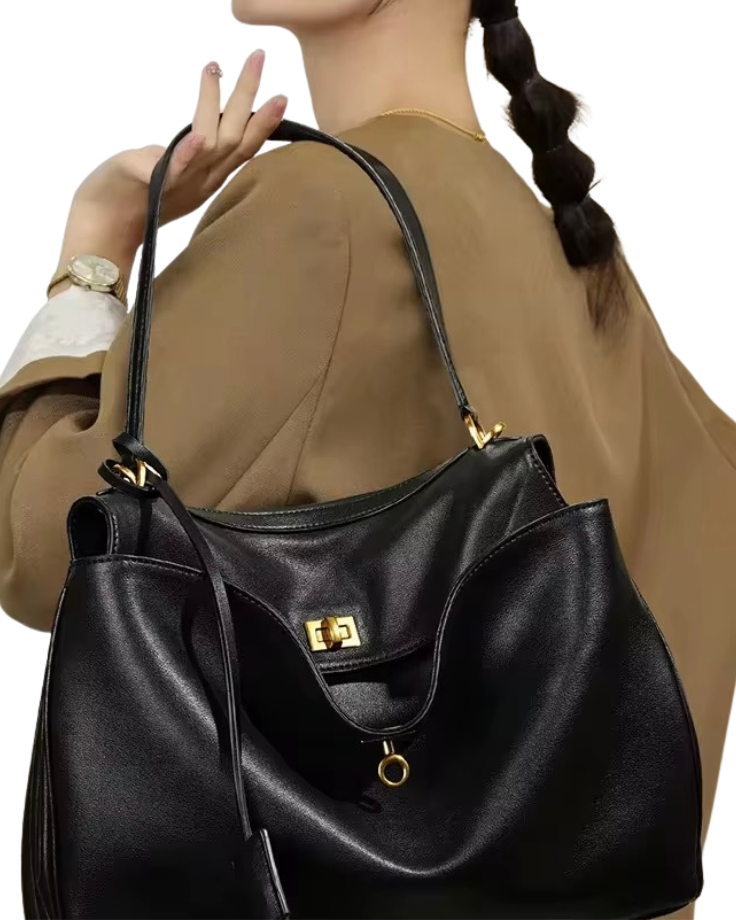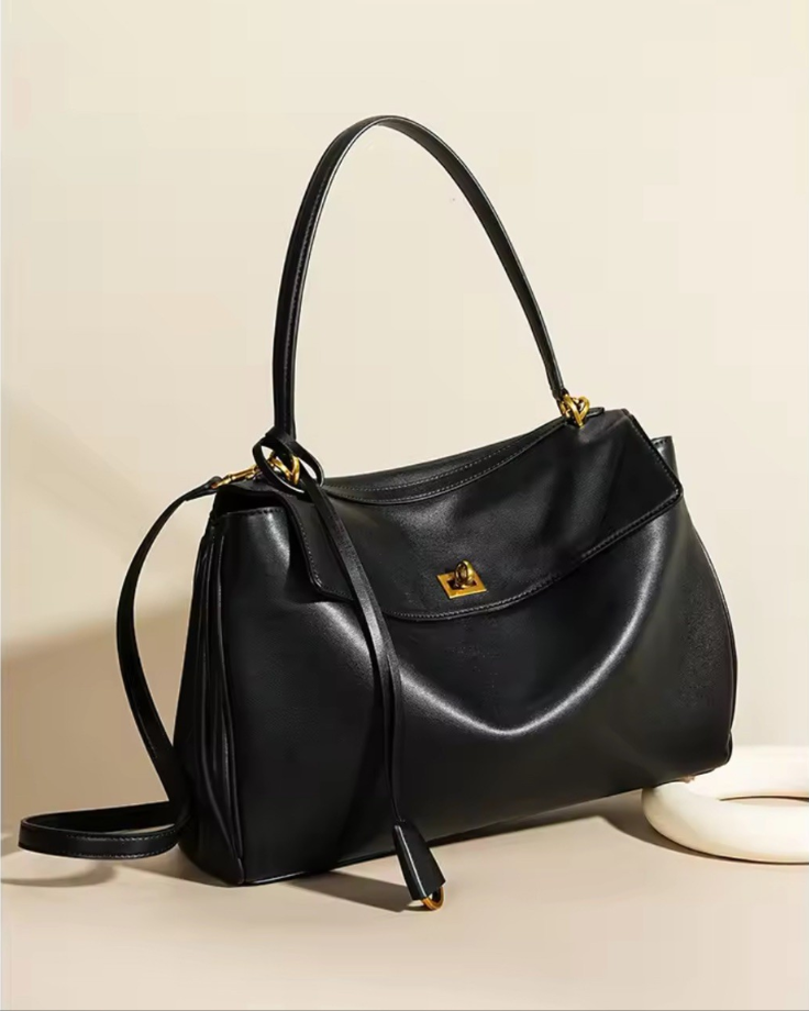 Elise Tote Crossbody – Convertible Genuine Leather Bag in Black