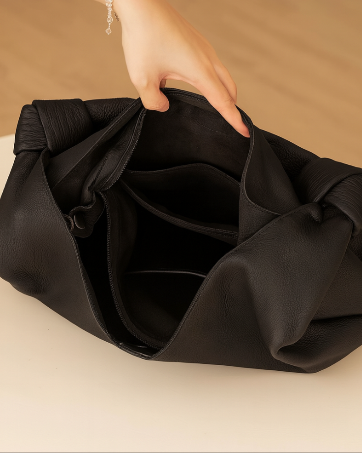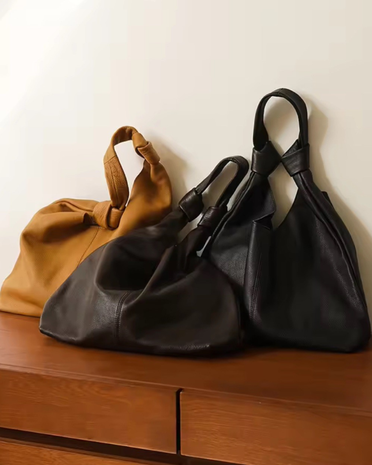 Crafted from supple genuine leather, the Noa Soft Tote blends understated elegance with thoughtful functionality. Its relaxed silhouette is defined by softly structured knot handles, creating a sculptural, slouchy profile that feels both modern and timeless.