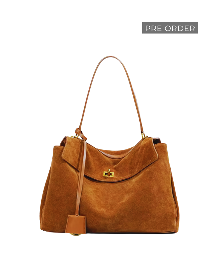 Solène Large Tote - Genuine Suede in Latte (PRE-ORDER)