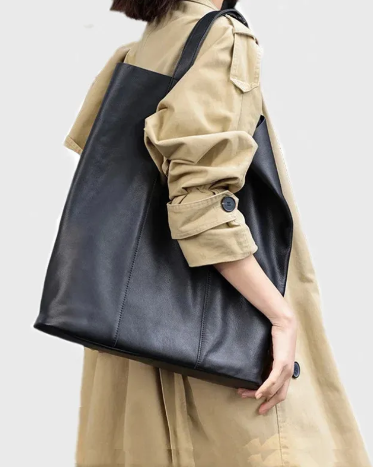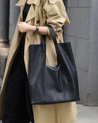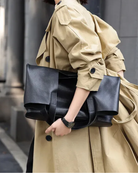 The Ava Foldover Tote is where understated elegance meets versatile functionality. Crafted from smooth, structured leather, this sleek black carryall transitions effortlessly from a spacious tote to a chic oversized clutch with a simple fold. Whether you're heading to work or out for the evening, this bag adapts to your day.